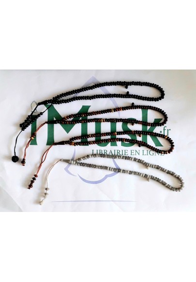 Sibha chapelet poche petites billes noir/marrons/grises, avec compteurs de 3 pour capacité dhikr 3000